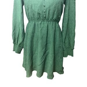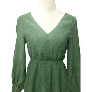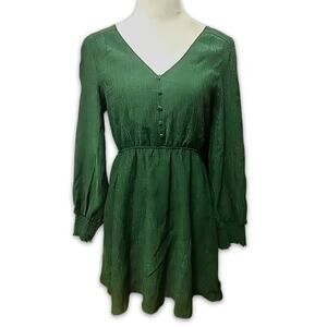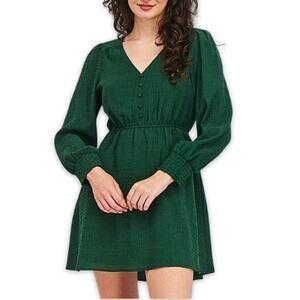 BB Dakota Mini Dress Textured Fabric Button Accent Long Sleeve Pull On Green W