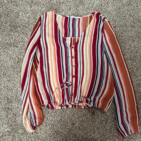 BB Dakota Multicolored Tie Front Blouse