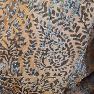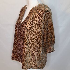 BB Dakota Better to Burn out Paisley Flocked Velvet Puff Mid Sleeve sz M Orange and Green. Deep V Neck, loose fit and semi-sheer. Really beautiful top! Brand new with tags. Approximate Measurements Laying flat pit-pit 22" length top-bottom 24"