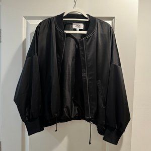 The Jack by BB Dakota On Duty Black Satin Bomber Jacket gives major boss-babe vibes! Sleek and lightweight woven satin shapes a classic bomber silhouette, complete with ribbed knit accents at the neckline and cuffed long sleeves. Two diagonal welted pockets and a gunmetal zipper decorate the front. Elastic waist is cinched with two drawstrings.