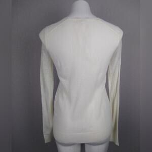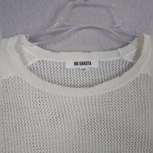 BB Dakota Open Knit Distressed Trim Sweater Size XS Cream Crew Neck Winter