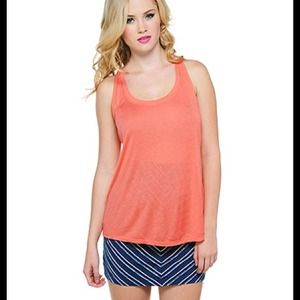 The Parish tank features a scoop neckline and a racerback cut in a soft, flattering knit. Measuring 24" from the highest point of the shoulder to the hem.
