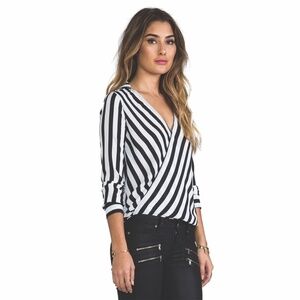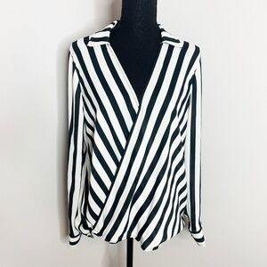 BB Dakota Paxton Gatsby Striped Blouse Large Waist 44" Bust 42" Arm 24" Front Length 24" Back Length 27" In great condition.