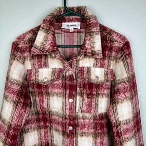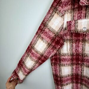 BB Dakota Plaid Shacket Fuzzy Barn Jacket Red Cream Snap Front Lumberjack Coat L