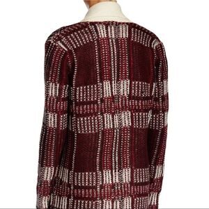 BB Dakota maroon, cream and black shawl collar open cardigan. Gently used condition.