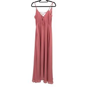 BB Dakota RSVP Blush Pink Spaghetti Strap Lace Up Back Side Zip Long Dress READ
