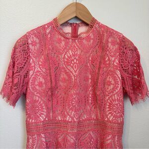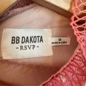 Size 12. BB Dakota RSVP pink lace overlay dress.