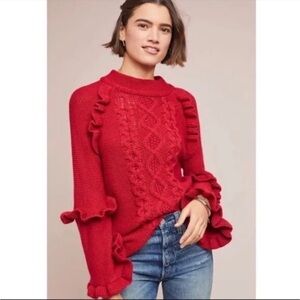 BB Dakota Red Cable Chunky Knit Ruffled Sleeve Sweater