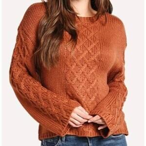 BB Dakota Retro Active Cable Knit Pullover Sweater Top Size Small in Rust NWT