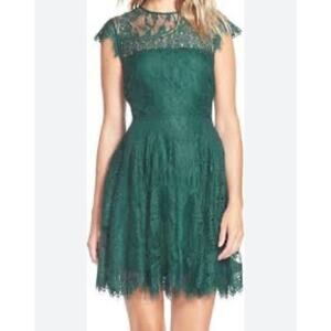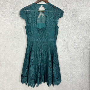 BB Dakota Rhianna Open Back Lace Fit & Flare Cocktail Dress Green Womens size 2