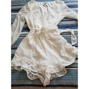 BB Dakota Romper Ivory Swiss Dot Long Sleeve Wrap Top Womens Size Medium