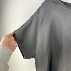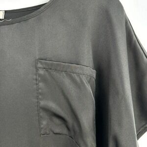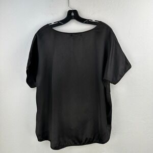 BB Dakota Top Womens XL Black Satin Short Sleeve High Low Hem Pullover Blouse