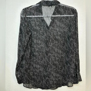 This blouse is preloved and in good condition with no obvious defects. It features a unique pattern and is sheer.