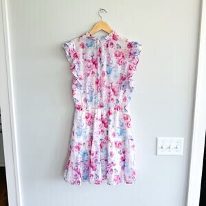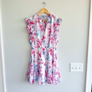 BB Dakota Steve Madden Floral Vibes Ruffle Trim Sleeve Dress Pink M