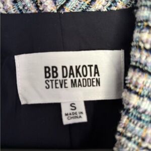 The BB Dakota Steven Madden Gray Blazer offers a sophisticated yet casual look with its textured knit fabric and classic blazer silhouette. Its versatile gray hue and relaxed fit make it a perfect addition to any wardrobe, effortlessly blending style and comfort.