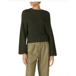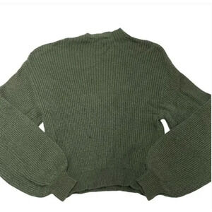 BB Dakota Sweater Womens Small Olive Green Ribbed Mock Neck Balloon Sleeve