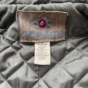 BB Dakota Sz M Military Style Jacket Green Quilted Boho Bella Mock Neck FLAW