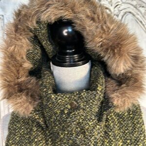 BB Dakota Tweed Faux Fur Hoodie Snow Day Casual Puffer Vest Size Large