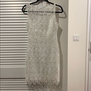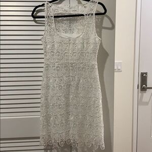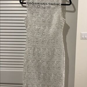 BB Dakota White Morrow Lace Sheath Dress Sz 4 Great condition, pre-owned. Gorgeous textured lace, back cutout, back zipper This is fitted and snug Sleeveless Fully lined 100% polyester