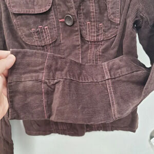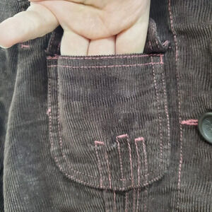 BB Dakota Women's Brown Pink Contrast Stitch Retro 70s Fitted Corduroy Jacket S