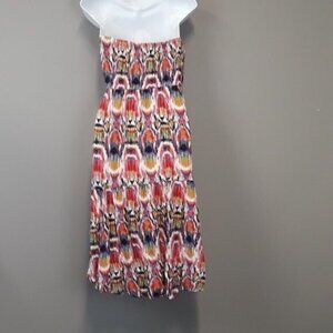 BB Dakota Womens Hi Low Strapless Dress Size Medium Multi Abstract Artsy BOHO
