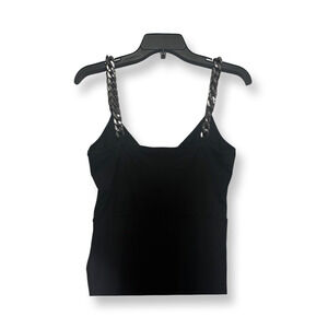BB Dakota Womens Slip Dress Black Stretch Mini V Neck Chain Strap Sexy M New