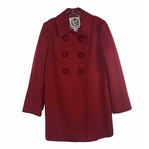 BB Dakota Women's Wool Blend Pea Coat Size Large Red Lined Snap Close