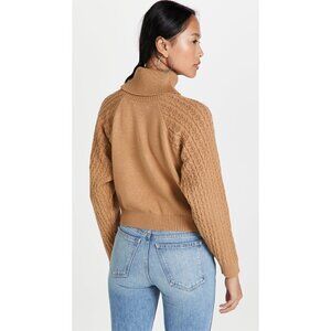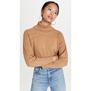 Cable-knit raglan sleeves brings a cool dose of texture to this classic turtleneck from BB Dakota. A subtly cropped fit makes this earth-tone sweater great for pairing with all your high-waisted styles.