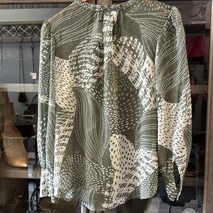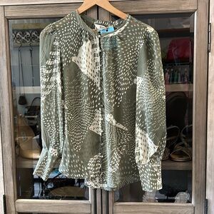 Bb Dakota Sheer Button-Down Blouse in Olive Green Print**