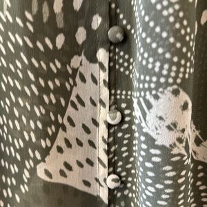 This stylish Bb Dakota blouse features a beautiful olive green color with an abstract print, perfect for adding a touch of sophistication to your wardrobe. The sheer material and button-down front make it a versatile piece for layering over a cami or wearing on its own. Whether you're dressing it up for a night out or keeping it casual for a day at the office, this blouse is sure to become a favorite in your collection.