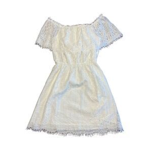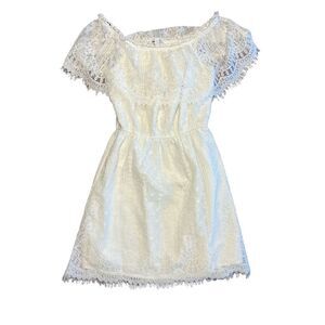 BB Dakota zinnia lace off the shoulder ruffle shoulder mini ivory dress XS bride