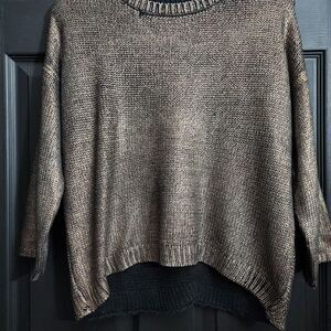 Knit sweater from BB Dakota topped with an allover metallic finish.