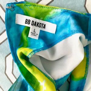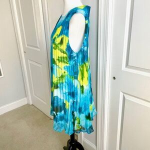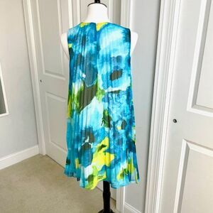 BB Dakota Watercolor Blue Green Yellow Accordion Pleated Dress Size Large
