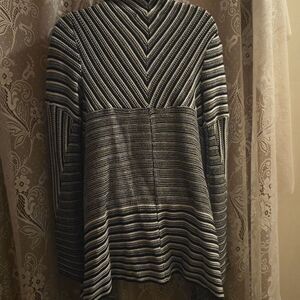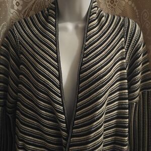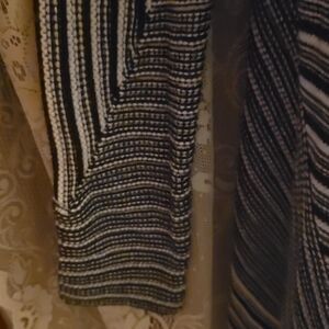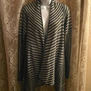 BB Dakota women's size extra small black white vertical horizontal stripe open front cardigan 100% acrylic super soft, 20 inches pit to pit, 31 inches long, excellent condition