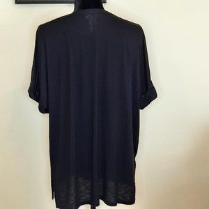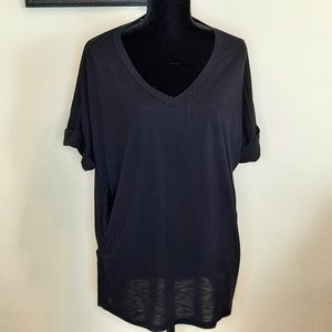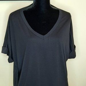 F117. New Without Tags! Textured lightweight V-neck tunic from B!B! has drop shoulders with raglan sleeves in a hip-skimming tunic length. Deconstructed oversizing.