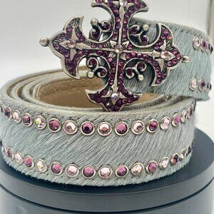 PURPLE CROSS AND ZEBRA HAIR BELT. GOOD CONDITION.