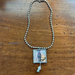 Chain looks like BB’s. 2 sided charm. Depending on your mood. 16” total length