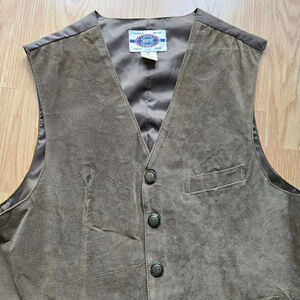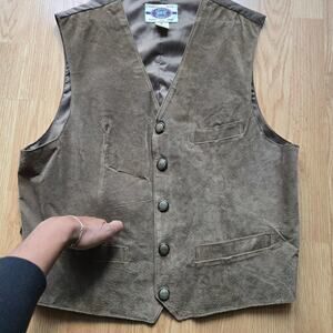 men’s leather vest, western style vest, vintage suede vest, brown button-up vest, genuine leather waistcoat, cowboy vest, classic ranchwear, BBB Basic System vest, medium size men’s vest, casual layering vest