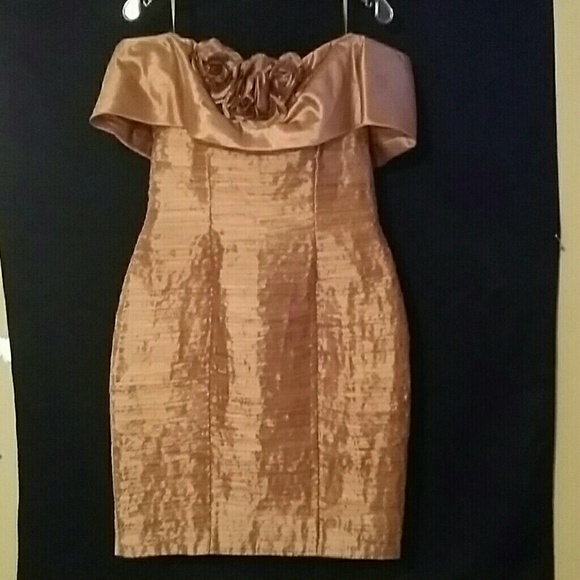 Cocktail /evening dress, knee length, off sholder, built in stays for support.