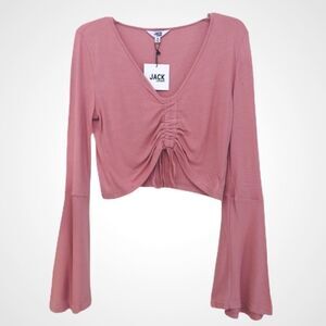 Jack by BB Dakota crop top, Long sleeve, Trumpet sleeve, Tie detail Front, Deep V-neck