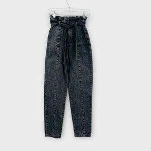 BB DAKOTA High Rise Paperbag Waist Cropped Jeans in Washed Black Women’s Size 6