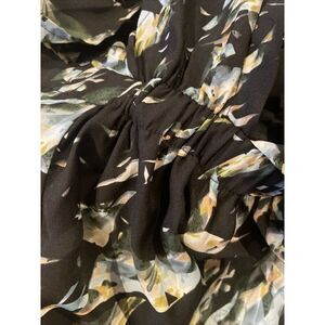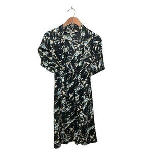 BB Dakota Deep VNeck Dress Womens Medium Stretch Waist Print A-Line Black