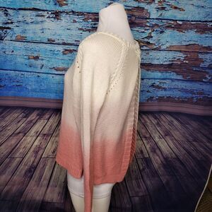 BB Dakots knit sweater with open back. White to pink ombre. 60% cotton 40% acrylic