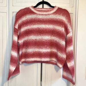 As you wish. The Pink Please is a colorful space dye striped pullover sweater with a relaxed fit and wide sleeves. An easy way to add a pop of color to your fall wardrobe. lt is a fuchsia pullover sweater with a relaxed fit and wide sleeves. Cropped length.