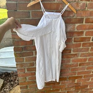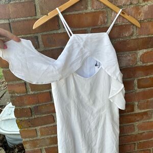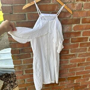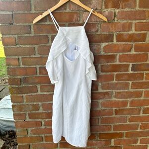 BB Dakota white cold shoulder dress with flutter sleeves and keyhole neckline. Size 6. NEW with tags.