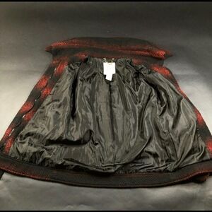 Warm- Super soft & cozy fabric! Belted. zip front. Red & black striped herringbone print.