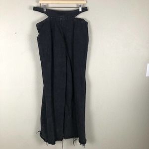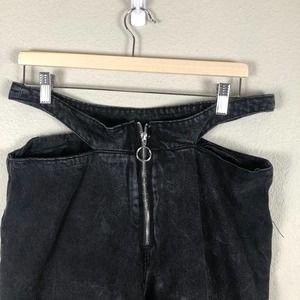 BBJ Los Angeles Jeans Womens Juniors 13 Black Hip Cutouts Wide Leg Raw Hem