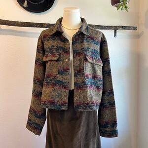 BBJ Multi Colored Southwestern Button Front Cropped Jacket Size Large