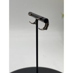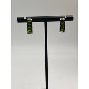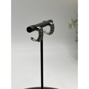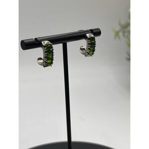 This is a pair of a BBJ half hoop earrings, sterling silver with green gemstones, it says emerald on the gem tester but I’m assuming it’s lab created.