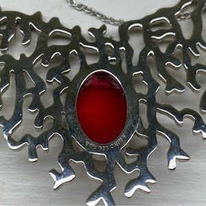 Add a touch of western charm to your jewelry collection with this stunning BBJ Sterling Silver necklace. The necklace features a beautiful asymmetrical fern design with a red howlite center stone that makes it a perfect statement piece. The necklace has a 16-inch chain with a round link style and lobster closure for easy wearing.